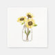 Un bel ensemble de serviettes en papier qui comprend un bouquet ensoleillé de tournesols assis dans un bocal de mason. Parfait pour un déjeuner d'été.