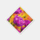 Violet coloré, violet, tulipes roses sur un lit à fleurs. Presque toutes les couleurs arc-en-ciel présentes. Scène florale lumineuse et positive. Photographie macro.