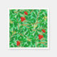 Serviettes en papier dans un William Morris motif textile Art Nouveau de branches de lychee et de feuilles, dans les tons de chaux et de vert profond, accentué de fruits de lychee rouge et de fleurs jaunes, sur un arrière - plan vert clair