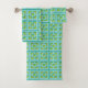 Ajoutez un peu de Palm Springs moderne du milieu du siècle partout où vous allez avec ce set de serviettes à motifs Retro Turquoise et Green Trellis. Il s'inspire de blocs de brise en béton vintage. L'architecture déconstruite des années 1950 donnera une sensation de design instantané à la vie quotidienne.