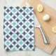 Bleu marine foncé moderne et élégant, diamants bleus et blancs d'aqua de turquoise rétros et décontractés et serviette de cuisine géométrique de motif de cercles, personnalisables audacieux avec votre propre texte ou photo, une addition unique et élégante à votre décor de cuisine.