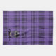 Custom American MoJo Kitchen Towel 16" x 24" avec un graphisme vectoriel d'un mignon hibou mauve, gris et noir avec des cheveux et un crâne pourpre assis sur une branche avec un coeur brisé et un arrière - plan motif pourpre.