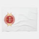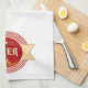 Logo de bière graphique rouge de style rétro avec rayures diagonales, ornement feuille et étoile.
