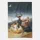 Serviette de cuisine Sabbath de Goya Witches. Peinture à l'huile sur toile de 1798. Le peintre espagnol Francisco Goya s'est souvent inspiré de thèmes occultes et mystiques dans son travail. Le sabbat des sorcières est l’une des peintures les plus célèbres de Goya en raison de son sujet sombre et de son sens de la macabre. Un four de sorcières s'installe autour de la figure du diable, représenté comme une chèvre avec de grandes cornes ornées d'un laurier de feuilles en chêne. Un enfant est consacré à la chèvre tandis que plusieurs squelettes peuvent être vus dans le arrière - plan. Traversez un cordon de chauves-souris au-dessus d'une lune en croissant inversé.