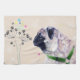 Serviettes de cuisine adorables avec un petit carlin mignon sentant quelques fleurs.