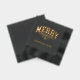 Serviettes de Noël personnalisées en noir et or. Customisez avec votre nom de famille. Disponible en plusieurs couleurs.