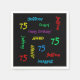 Quelle merveilleuse serviette en papier personnalisée pour une fête du 75e anniversaire ou toute autre occasion. Le nom et l'âge se répètent dans différentes polices et couleurs primaires sur un arrière - plan noir. Facile à personnaliser - il suffit de CHANGER LE NOM, L'ÂGE et L'OCCASION EN UN SEUL ENDROIT. Prend en charge le nom jusqu'à 9 caractères. Une serviette en papier colorée et amusante pour la fête d'anniversaire. Nappe et plaques de papier correspondants disponibles sur zazzle à SocolikCardShop.Tous droits réservés © 2014 Alan & Marcia Socolik.