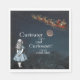 Alice du livre pour enfants Alice in Wonderland regarde vers le ciel bleu nuit à un Père Noël vintage et son traîneau plein de jouets, ainsi que sa citation du livre "Curiouser et curieux, a crié Alice !" et une belle lune pour faire ces serviettes de Noël magiques et amusantes.