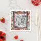 Forfait de 50 serviettes de cocktail en papier blanc avec une image vintage d'Alice dans la cour de la Reine des Coeurs dans un cadre en damier noir et blanc sur un arrière - plan de jouer aux cartes sur rouge. Voir les dessous de verre en plastique et en papier correspondants. Voir l'ensemble de la collection Wonderland Napkin dans FOOD/BEV | Section Linge.