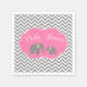 Mignonnes serviettes en papier baby shower à thème pour filles. Un motif chic en chevron gris, un cadre rose et une paire d'éléphants pour bébés mères.