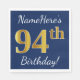 Serviettes En Papier Blue, Faux Gold 94e anniversaire + Nom personnalis