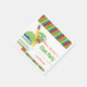 Cette serviette en papier de classe présente un joli ver de livres assis sur une pile de livres. La serviette est accentuée de bandes multicolores sur le dessus et le dessous. Le texte personnalisable vous permet d'ajouter : le nom et la note de l'enseignant.