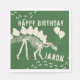 Ce Stegosaurus est prêt à faire la fête ! Squelette de dinosaure avec ballons et empreintes de pied personnalisées serviettes d'anniversaire personnalisables nom et couleur arrière - plan.