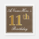 Cette conception simple et élégante de serviette en papier comporte un message comme "AnameHere’s 11th Birthday" (avec le "11th" à la teinte fausse or) dans une zone carré de couleur marron avec un contour de bordure simple. Le nom est dans un texte de type script de couleur blanche, et peut être personnalisé. Des serviettes comme celles-ci pourraient être utilisées à une fête d'anniversaire pour quelqu'un qui célèbre son onzième anniversaire. [~Z0000139]