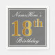 Serviettes En Papier Elégant Grey, Faux Gold 18e anniversaire; Nom pers
