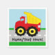 Les couleurs primaires adorables et fraîches sont l'élément clé de ce cadeau à thème de construction de camions à benne pour enfants ou garçons mignons. Comprend un camion à benne de travail avec un corps rouge, un lit à benne jaune et des rondelles de roue, des gaz d'échappement et des pare-chocs gris. L'arrière - plan contient une route asphaltée grise avec des marques blanches, vert pour l'herbe et bleu pour un ciel. Un grand thème pour un décor de garçon, de constructeur et de bâtiment des métiers ou de grande machine à enfant décoration de chambre à thème. Tous les Designs Copyright © www.CustomInvitesOnline.com Ce design est disponible en collection complète !