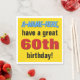 Ce design de serviette en papier à thème d'anniversaire accrocheur et audacieux comporte un message comme "A-Name-Here, have a great 60th anniversaire!", où le nom et le numéro d'anniversaire peuvent être personnalisés. Des serviettes en papier comme celles-ci pourraient être utilisées lors d’une fête organisée pour célébrer l’anniversaire de quelqu’un.