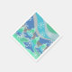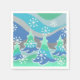 Un paysage hivernal moderne et stylisé avec des pins gelés et des flocons de neige étincelants. Des serviettes en papier avec un design personnalisable vert, bleu, gris argenté et blanc pour vous permettre de personnaliser avec votre propre texte, images et idées. Image créée à l'aide d'un dessin au crayon de couleur numériquement amélioré.