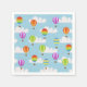 Hot Air Ballons dans Cloudy Dotty Sky sur des serviettes de cocktail colorées.