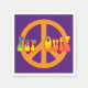 Paquet de 50 serviettes de cocktail en papier blanc avec une image de cette phrase populaire des années 60 et les années 70 "Loin de là !" en arc-en-ciel en lisant à travers un panneau de paix orange néon sur violet. Voir la serviette en tissu assortie, serviette de cuisine, set de table en tissu, set de table en papier et dessous de verre. Voir toute la collection Disco les années 70 Napkin dans le FOOD/BEV | Section Linge.