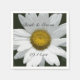 Customisez les jolies serviettes en papier Mariage blanc Fleur de marguerite avec les noms personnels de la mariée et du marié et date à utiliser à votre douche nuptiale ou réception de mariage cocktail heure. Ces serviettes jetables à fleurs personnalisées comprennent une photo florale numériquement peinte d'une fleur marguerite blanche avec un centre jaune et un arrière - plan foncé.