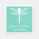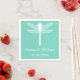 Belle serviette à thème mariage avec une silhouette de libellule blanche sur une couleur arrière - plan turquoise. Customisez le texte avec les détails de votre événement. La couleur turquoise de l'arrière - plan peut être changée en n'importe quelle autre couleur sous personnalisation pour correspondre parfaitement à votre événement.