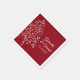 Customisez les serviettes en papier de mariage d'hiver Red Christmas Tree avec les noms personnels de la mariée et du marié et la date de leur douche nuptiale de décembre, fête de fiançailles ou réception de mariage. Ces élégantes serviettes jetables d'hiver personnalisées présentent un design complexe de xmas blancs avec un arrière - plan rouge.
