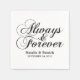 Serviettes en papier Mariage toujours et jamais à la mode et élégantes avec une belle conception de texte de typographie manuscrite en noir et blanc. Ces serviettes simples et élégantes donnent le ton à un mariage moderne et romantique et sont faciles à customiser avec vos détails de mariage. Cliquez sur "Customiser" pour trouver d'autres options de personnalisation. La couleur Arrière - plan peut être changée en n'importe quelle couleur.