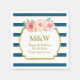 Serviettes de mariage Monogram avec motif classique bleu marine et rayures blanches, fleurs d'aquarelle rose vintage et détails or glamour. Customisez ces serviettes avec vos noms, monogramme et date mariage.