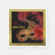 Masquerade quinceañera quinzième anniversaire rouge, faux papier feuille d'or napkin, avec un rouge vénitien, masque d'or avec plumes rouges sur arrière - plan noir avec une bordure d'or de faux feuille d'or à la texture émiettée. Un design modèle parfait pour votre bal mascarade de quinceañera ou fiesta de quince años, fiesta de quinceañera, quince años ou quince bal masque party.Également adapté pour une fête en Sweet sixteen. Notez qu'il n'y a pas de véritable feuille d'or, masque ou plumes, mais ils sont tous "imprimés sur" des images.