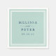 Convient parfaitement aux couleurs de la menthe et de la marine, nos serviettes à cocktails mariages estivales et chic sont dotées d'un arrière - plan vert de seaglass pâle avec une bordure blanche et vos noms et votre date de mariage en lettres bleu marine élégantes. Coordonnée avec notre collection mariage Seaglass Tides.