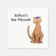 Un mignon chat tabby orange portant un yarmulke bleu tient par le texte que vous pouvez personnaliser. Ajoutez le bar mitzvah, anniversaire ou occasion spéciale nom du garçon et l'année de l'événement dans n'importe quelle couleur que vous voulez à cette faveur de fête.