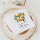 Serviettes en papier pour mariage avec des graphismes orange vif et une police moderne, thème citron.