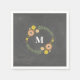 Serviettes en papier illustrant une couronne orangée fleurie sur un arrière - plan inspiré du tableau de bord. Personnalisez le monogramme. Recherchez les invitations correspondantes et d'autres éléments de coordination chez Jill's Paperie.
