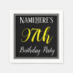 Cette conception simple et élégante de serviette en papier comporte un message comme "NameHere’s 97th Birthday Party", avec le "97th" en texte jaune raffiné, dans une zone carré de couleur noire avec un contour de bordure simple. Le nom peut être customisé. Des serviettes comme celles-ci pourraient peut-être être utilisées à une fête d'anniversaire pour quelqu'un qui célèbre son quatre-vingt-dix-septième anniversaire. [~Z0000150]