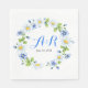 Serviettes Jetables Bleu blanc Monogramme marguerite Mariage floral