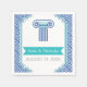Clé bleue grecque et colonne mariage papier serviette. Une clé grecque design ou grecque fret ou méandre design motif en bleu, aqua et blanc, une colonne grecque bleu et turquoise et votre texte gris dans un cadre avec une bannière aqua. Moderne mais avec un look vintage dans un sens. Cet élégant avec des éléments classiques de la Grèce antique design est un modèle entièrement personnalisable et fait partie d'un ensemble mariage parfait pour une destination Geek d'été ou mariage grec, douche nuptiale, réception, fiançailles ou fête d'anniversaire.