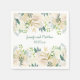 #2 Serviettes à fleurs aquarelle - Vos noms et votre date, en caractères calligraphiques manuscrits, sont enfermés dans une couronne d'aquarelle avec des roses crème et blanches, de la parties scintillant dorée, des feuilles dorés et verts et d'autres verdure. Facile à personnaliser avec votre nom et votre date.