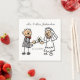 Funny Disposable Papier Mariage Napkins présente le M et Mme avec le nom de famille de la mariée et du marié ainsi que la date de l'événement mariage. Toutes les informations importantes sont présentées à côté d'une caricature amusante du marié plaçant l'anneau mariage sur le doigt de la mariée.