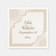 Elégante dentelle blanche aux perles papier mariage beige serviette en dentelle blanche fleurie sur le beige de sable qui couvre deux coins d'un rectangle blanc avec bordure beige. Texte en marron. Notez que la dentelle est "imprimée sur" et non un tissu réel. Ce design élégant, chic et romantique et chic fait partie d'un ensemble mariage et est parfait pour une douche nuptiale mariage chic printemps, été ou automne/automne, réception, fiançailles ou fête d'anniversaire avec une palette de couleurs neutres.