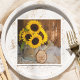 Ajoutez une touche de charme à votre réception nuptiale décontractée mais classe ou mariage avec les jolies tournesols personnalisées et les serviettes en papier Mariage Garden Watering Can. Ces serviettes jetables de style ranch chic et rustique sont équipées d'une photo fleurie numériquement rehaussée d'un bouquet de fleurs de tournesol jaunes dans une canette d'arrosage de jardin en métal argent, voile de mariée blanc, tranche de bois naturel avec le mot LOVE brûlé dessus et un mouchoir en lin vintage en dentelle avec un arrière - plan de grange brun patiné. Idéal pour organiser votre fête de grange informelle.