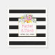 Motif rayé noir et blanc chic et jolies fleurs folkloriques rose et jaune ornent cette serviette en papier mariage moderne. Idéal pour une table mariage moderne.