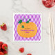 Cette serviette en papier de la fête de la sculpture Citrouille d'Halloween présente un dessin fantaisiste d'un citrouille fraîchement cueilli sur un arrière - plan rayé violet et blanc éclatant. Le texte personnalisé vous permet d'ajouter votre nom.