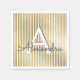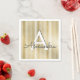 Serviettes Jetables Huile blanche et or rayé Monogramme Anniversaire