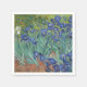 Irises de Vincent Van Gogh, huile sur toile 1889, est un tableau d'une parcelle de fleurs de violet et d'iris blanc en fleurs dans un jardin fleuri. Peint de la vie de l’artiste lors de son séjour à Arles, dans le sud de la France, le tableau construit des contours courts, tourbillonnants et fluides, colorés et colorés dans une composition qui capture la vie intérieure, la croissance, la forme et le mouvement des plantes floraux avec leurs feuilles verts longs et dynamiques. Van Gogh a ici synthétisé les leçons de l'impressionnisme français dans sa propre vision unique et originale, avec des couleurs à bijoux exagérées qui donnent les effets du vitrail. Vincent Van Gogh (1853 - 1890) était un peintre hollandais du mouvement post-impressionniste connu pour son dessin audacieux et expressif, ses coups de pinceau tourbillonnants et ses couleurs intenses et rehaussées. Au début de l'âge adulte, Van Gogh a travaillé comme marchand d'art, enseignant et pasteur avant de reprendre l'étude à temps plein de dessin et de peinture à la fin de la vingtaine. Influencée par Rembrandt, l’école des Réalistes du XIXe siècle et Barbizon, les premières peintures de Van Gogh présentaient des études sur les ouvriers et les paysans dans des tons de terre sombres. Déménageant en France en 1886, Van Gogh rencontre les innovations surprenantes des peintres impressionnistes et commence à appliquer leur approche de la couleur et de la matière, qui se poursuit dans le style mature pour lequel l'artiste est le plus connu. Van Gogh a produit des centaines de dessins et de peintures, dont des portraits, des paysages, des natures mortes et des peintures à fleurs, et de nombreux autoportraits qui sont devenus une influence dominante sur l'art moderne du 20ème siècle et en ont fait l'un des artistes les plus populaires de tous les temps.