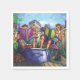 Art de la lecture estivale de Traci Van Wagoner présente un garçon et une fille assis dans un jardin urbain, les pieds dans un bain cool, en train de boire de la limonade et de lire des livres. Un chat et un chien s'allongent à leurs pieds sur le pont de bois. Parfait pour les amateurs de livres et de bibliophiles de tous âges.
