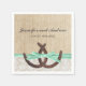 Serviettes en papier mariage campagnard rustique personnalisées. Doté d'un arrière - plan burlap avec dentelle blanche et d'un ruban vert imitation menthe avec une paire de fer à cheval vintages. Les dessins sont des illustrations/graphiques imprimés - PAS RÉELLEMENT RIBBON. Parfait pour un mariage occidental ou un mariage de grange.