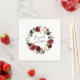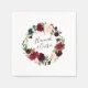 Des serviettes à mariage floral chic arborent vos noms en écriture manuscrite, encerclées d'une couronne d'aquarelle dans des tons vibrants de marsala bordeaux, rose rousse et bleu marine, entrelacés de feuilles verts et de feuillage d'eucalyptus. Conçu pour coordonner avec notre collection Radiant Bloom.