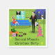 Ces serviettes jetables Retro Urban Christmas Couple présentent le dessin d'un élégant appartement de grand standing décoré pour les vacances avec des fils de lumières colorées de Noël et un kitsch, rose, arbre de Noël, avec des ornements turquoises et une étoile jaune. L'appartement dispose d'un sol vert et d'un mur en briques vertes. Sur le mur, quatre classiques Movie Martini Stretched Canvas Prints, également disponibles au magasin Zazzle de StrangeLittleOnion (conseil, conseil!). Trois estampes sont réalisées avec des arrière - plans turquoise et l'une est sur un arrière - plan noir. Sous les imprimés en toile, se trouve un canapé bleu du milieu du siècle moderne. Sur le canapé, une beauté sophistiquée aux cheveux raven vous attend. Elle porte une robe rouge vibrante et un chapeau de Père Noël. D'une part, elle tient une branche de faux orteils attachée avec un arc rouge. De l'autre côté de la pièce se trouve un homme suave, grand, sombre et beau. Il porte un costume noir, une chemise blanche et une cravate rouge. D'un côté, il tient un album vinyle, et de l'autre, il tient une couverture amusante. Au sol, un ottoman orange tient un lecteur de disques vert et noir. Propped against the ottoman est une autre pochette d'album avec un disque qui sort du côté. Il y a aussi trois albums de vinyle colorés éparpillés au sol. Derrière l'homme, on peut voir, à travers des portes coulissantes en verre, la neige tomber sur un balcon vert et la ville en dessous. Un chat blanc portant un arc rouge autour du cou est perché au bord du balcon. Au-delà du chat, vous découvrirez une ville à couper le souffle, avec des gratte-ciel et une lune jaune croissant. Le fond est chaque serviette comporte deux étoiles jaunes entourant l'écriture amusante et noire. Remplacez simplement le texte existant par le vôtre pour les fournitures de fête qui feront parler vos invités à travers le printemps! Si c'est ainsi que vit l'autre moitié, inscrivez-moi !