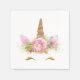 Des serviettes en papier Unicorne avec un adorable visage de licorne avec des cils dorés souriants et des cornes florales d'or sur un choix de votre propre arrière - plan de couleur. Vous pouvez ajouter du texte pour personnaliser ces mignons serviettes de licorne.